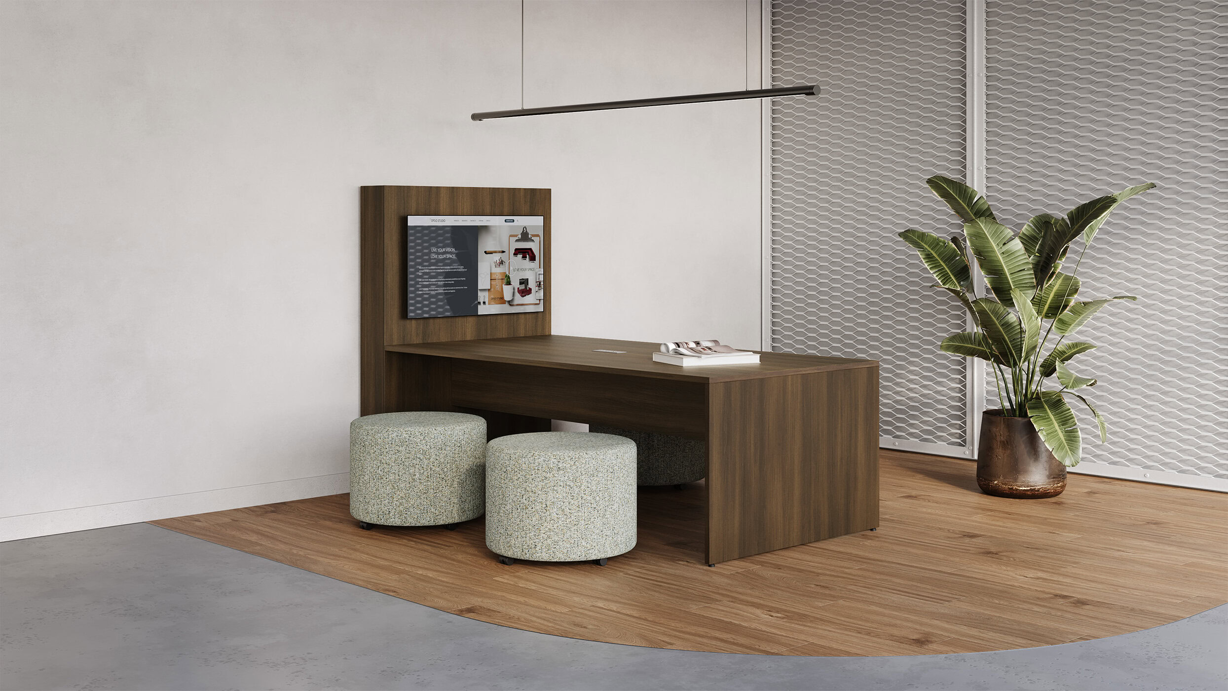 LET’S MEET MEDIA is designed to support all kinds of interaction. Large team or casual impromptu spaces, working in-person or virtually, all while allowing for collaboration, content sharing, and peer-to-peer learning. Available in two standard heights, and a wide range of sizes and finishes. Add on power modules with USB charging capability in various locations for added functionality.