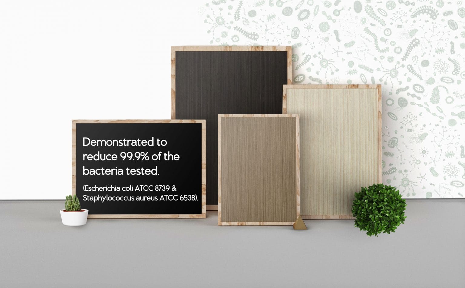 SURFACE+ panels have demonstrated to reduce 99.9% of the bacteria tested (Escherichia coli ATCC 8739, Staphylococcus aureus ATCC 6538). SURFACE+ decorative panels have been tested by a third-party laboratory according to ISO 22196: 2011 standards and were also proven to be compliant with the Japanese JIS Z2801: 2012 standard for antimicrobial activity and effectiveness in not promoting bacterial growth.